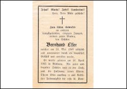 | Tod durch tragisches Geschick; im Kriegsjahr 1944 musste er mit Eltern die Heimat verlassen, die er nie mehr wiedersehen sollte; Dorffriedhof zu Hasberg |