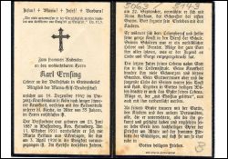 | ∞ 11.10.1911 Maria Heikaus aus Eckenhagen, † 3.4.1920; ∞ 22.9.1920 Anna Heikaus (Schwester); 3 K.Lehrer an der Volksschule in Steinenbrück; in den letzten Jahren schmerzhaftes Leiden; Druck in Hoffnungsthal |