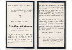 | ∞ 12.9.1912 Wilhelm Meuser; 5 K., davon 2 †; Lebensabend von schwerer Krankheit überschattet |