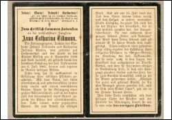 | Jungfrau: Eltern: Johann Tillmann u. Catharina Juliana geb. Platen; da Vater schon altersschwach, führte sie mit Bruder die Ackerwirtschaft; Vater † 15.7.1901; danach erkrankte sie an Lungentuberkulose |