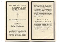 | Lange Krankheit; Eltern: Heinrich Esser u. Odilia geb. Erken; ∞ Matthias Irnich, †; ∞ 20.1.1932 Gerhard Kalscheuer, †; Druck in Kerpen |