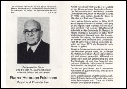 | Priesterweihe März 1927; Kapan in Hervest-Dorsten, 1932 in Senden b. Münster, 1927 in Moers-Meerbeck (St. Barbara); dort nach dem 2. Weltkrieg Pfarrer; Dechant; seit 1971 Pensionär in Ahaus; seine Schwester Maria führte ihm 44 J. lang den Haushalt, † Dez. 1979 |