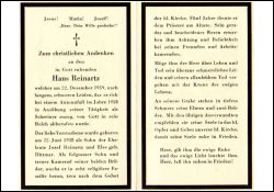 | Schreinerberuf; gestorben an den Folgen eines Autounfalls 1958; Eltern: Josef Reinartz u. Else geb. Dittmar; 5 J. Messdiener; |