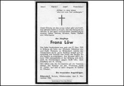 | Tod nach Unfall b. Bitburg; Eltern: Nikolaus Löw u. Katharina geb. Francois aus Rittersdorf |