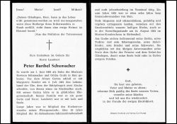 | Eltern: Bertram Schumacher u. Odilia geb. Grafs; ∞ 2.7.1921 Margarete Zander; 2 K., davon 1 früh †; Mitgl. Kirchenvorstand u. St. Sebastianus-Schützenbruderschaft; 10 J. bis 1932 gemeindevorsteher von Buir |