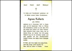 | ∞ 30.10.1918 Peter Kullertz; 1 Sohn, im 2. Weltkrieg gefallen; schweres Leiden |