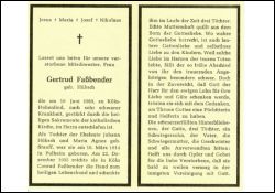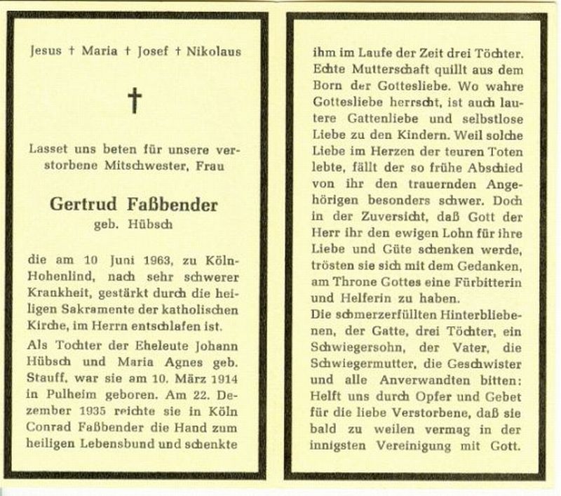 Eltern Johann Hübsch u. Maria Agnes Stauff; ∞ 22.12.1935 Conrad Faßbender; 3 Kinder |
