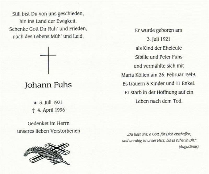 Eltern Peter Fuhs u. Sibille, ∞ 26.02.1949 Maria Köllen; 5 Kinder |
