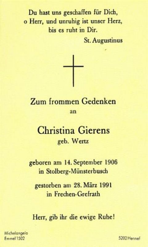 Gierens, geb. Wertz | Vorname: |