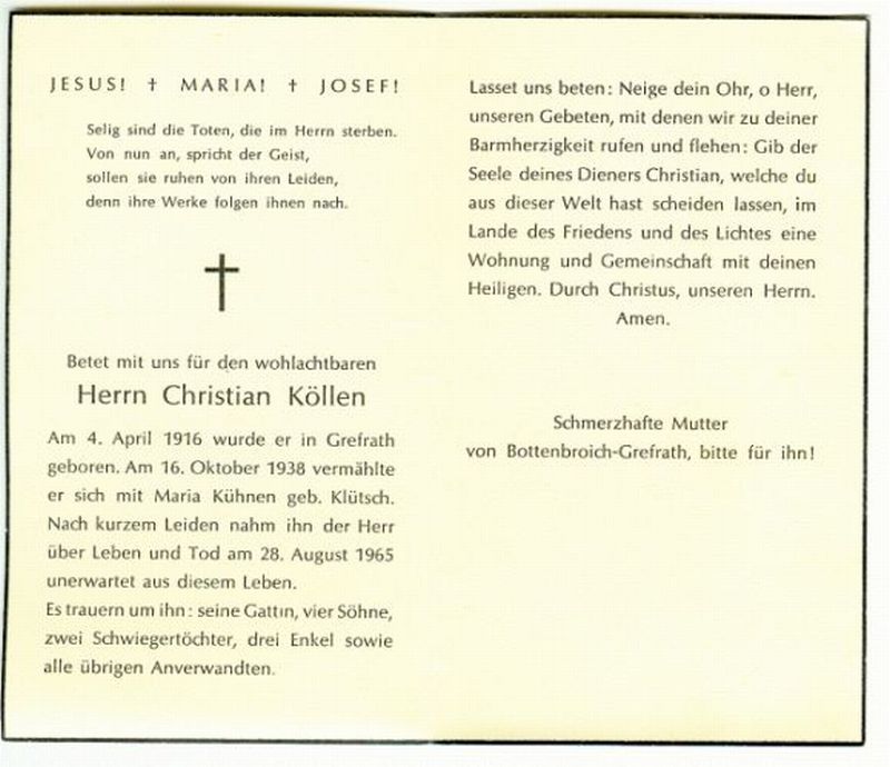 ∞ 16.10.1938 Maria Kühnen geb. Klütsch; 4 Söhne; |
