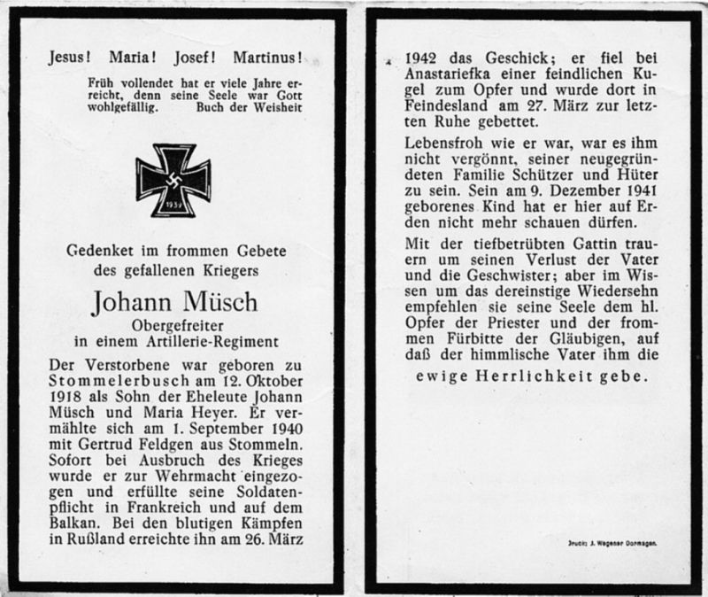 Gefallener 2. Weltkrieg; Eltern: Johann Müsch u. Maria geb. Heyer; identisch mit TS00100 |