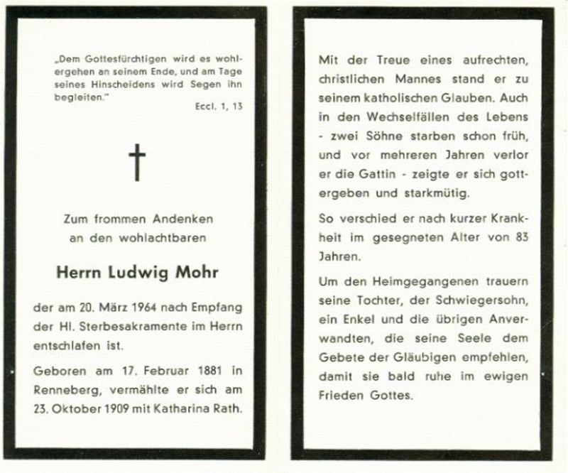 ∞ 23.10.1909 Katharina Rath †; 2 Söhne †; |