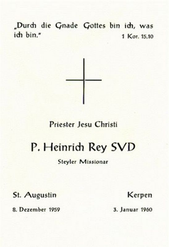 Pater - Steyler Mission SVD - Priester Jesu Christi, - Kerpen 03.01.1960 - |