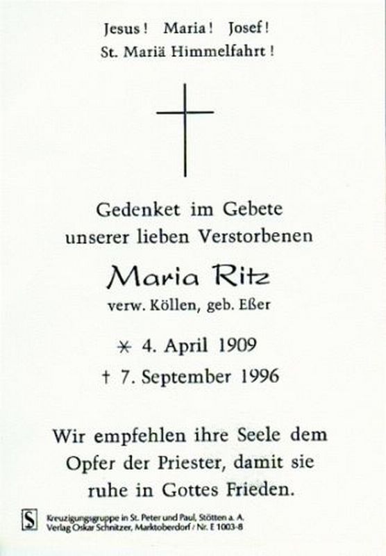 Ritz verw. Köllen, Maria