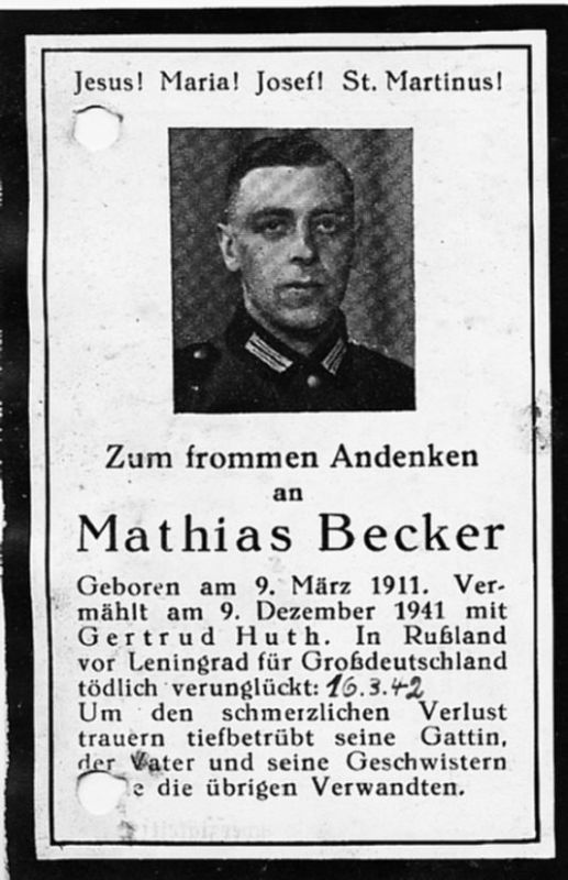 Gefallener 2. Weltkrieg; ∞ 09.12.1941 Gertrud Huth |