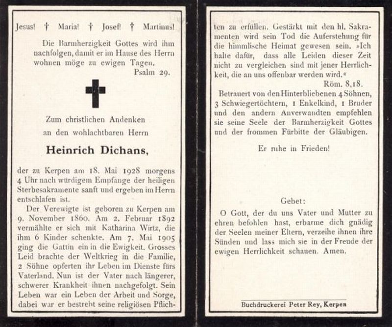 ∞ 02.02.1892 Katharina Wirtz; † 07.05.1905 †; 6 Kinder; |