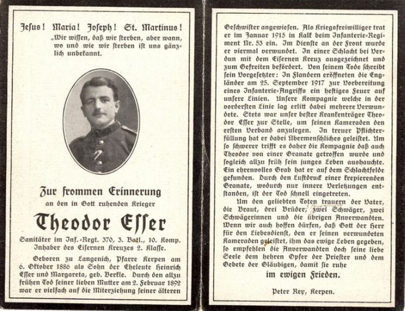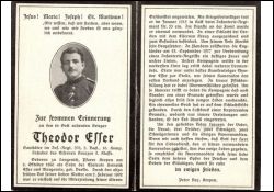 Eltern Heinrich Esser und Margareta geb. Berkle, † 02.02.1892; Sanitäter im Inf.-Regt. 370; |
