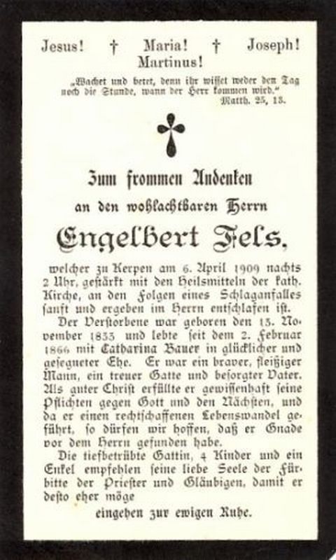 ∞ 02.02.1866 Catharina Bauer; 4 Kinder; Schlaganfall; |