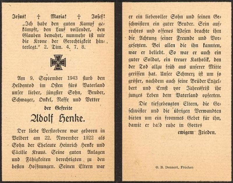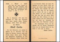 Eltern Heinrich Henke und Cäcilie Kraus; Heldentod im Osten; |
