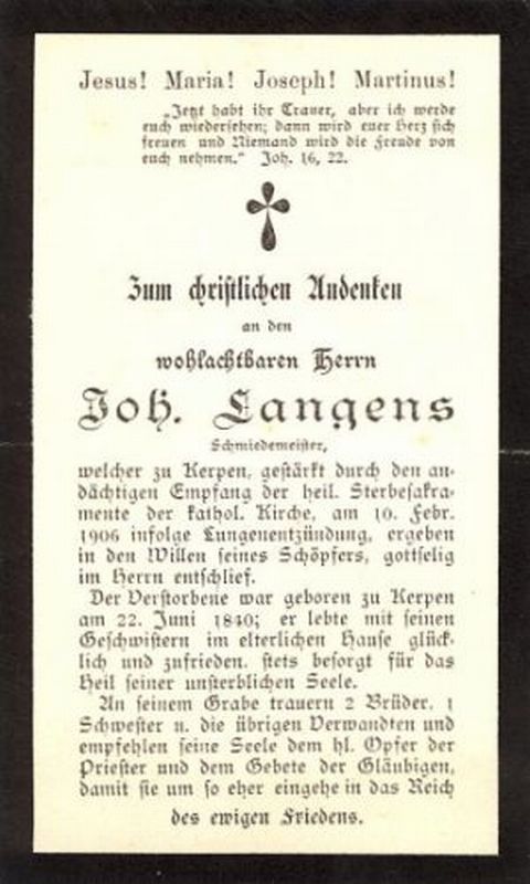 Schmiedemeister; ledig; 2 Brüder, 1 Schwester; infolge Lungenentzündung gestorben; |