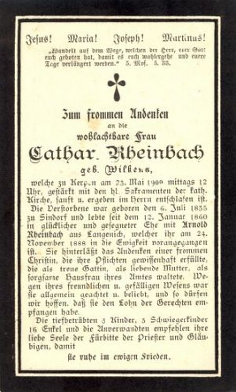 ∞ 12.01.1860 Arnold Rheinbach aus Langenich, 24.11.1888 †; 3 Kinder; |