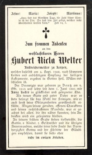 ∞ 07.06.1885 Anna Becker; 8 Kinder, Anstreichermeister zu Kerpen; |