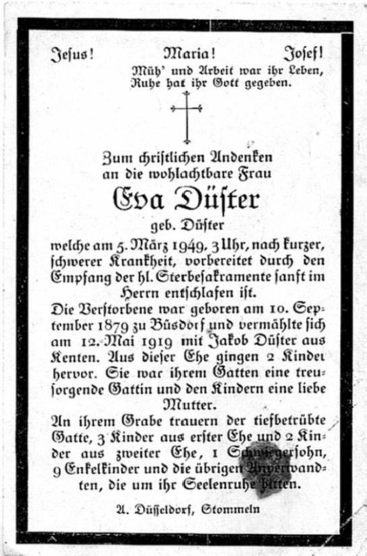 ∞ 12.05.1919 Jakob Düster aus Kenten