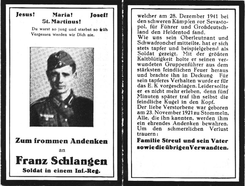 Gefallener 2. Weltkrieg; um ihn trauert Familie Streul |
