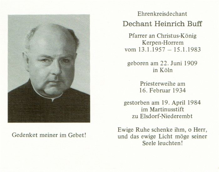 Priesterweihe am 16.02.1934; Pfarrer an Christus König in Kerpen-Horrem; Ehrenkreisdechant; |