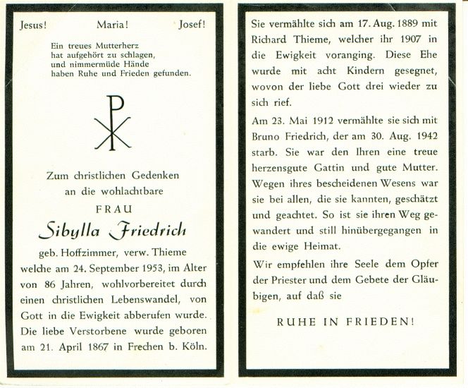 Friedrich verw. Thieme, geb. Hoffzimmer | Vorname: |