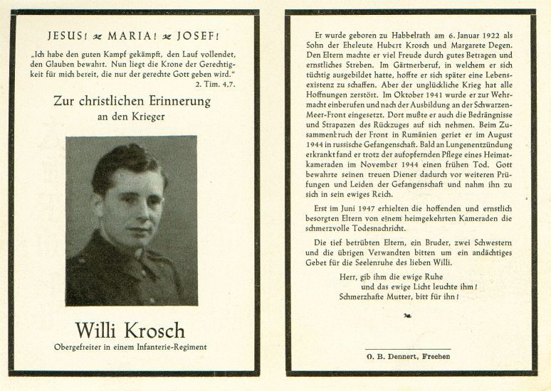 im 2. Weltkrieg gefallen; Eltern Hubert Krosch und Margarete Degen; |