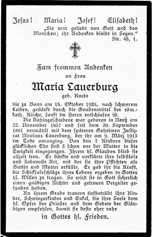 ∞ 20.9.1881 Nicolaus Lauerburg, später Geh. Justizrat, † 9.3.1913; 7 K., davon 3 verstorben; |