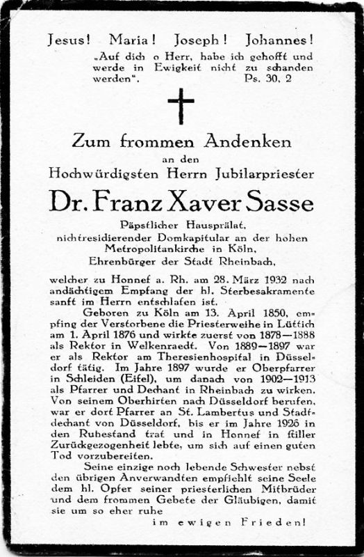 Priesterweihe 1.4.1876 in Lüttich; 1878 Rektor in Welkenraedt, 1889 Theresienhosp. Düsseldorf; 1897 Pfarrer in Schleiden, 1902 in Rheinbach, 1913-26 in Düsseldorf St. Lambertus |