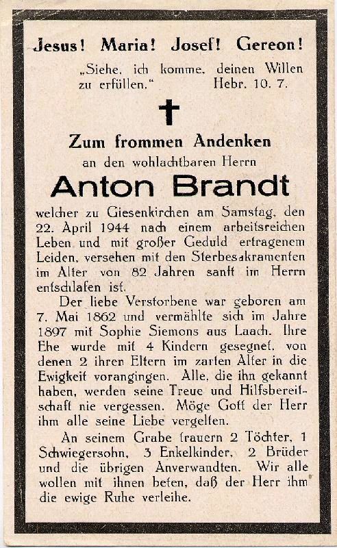 ∞ 1897 Sophie Siemons aus Laach; 4 K., davon 2 früh †; |