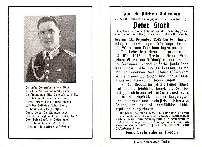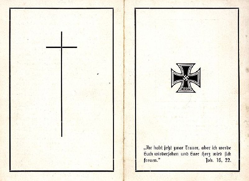 im 2. Weltkrieg gefallen; Oberfeldwebel ind Zugführer in einem Inf.-Regt.; |