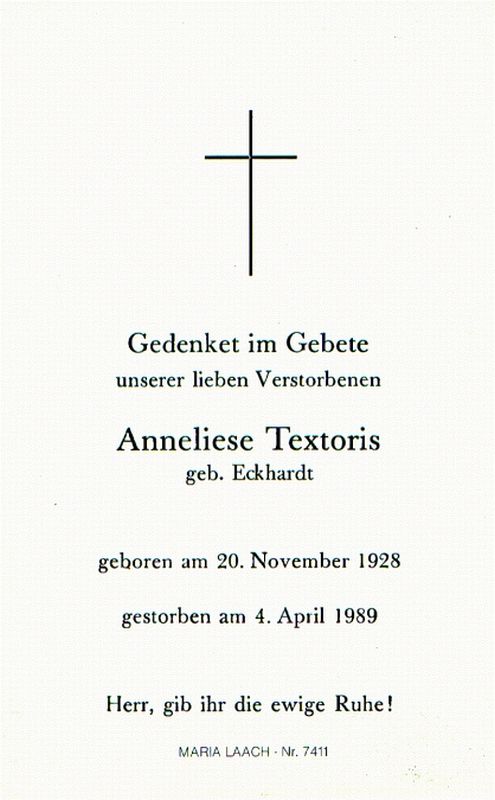 Textoris, geb. Eckhardt | Vorname: |