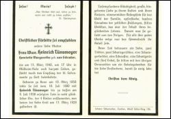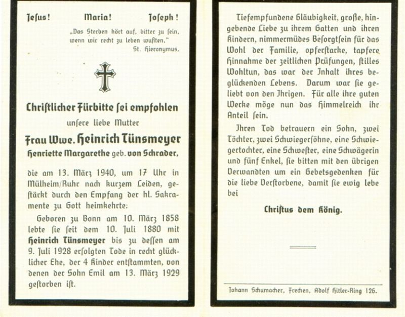 ∞ 10.07.1880 Heinrich Tünsmeyer, 09.071928 † ; 4 Kinder, davon Sohn Emil 13.03.1929 † ; |