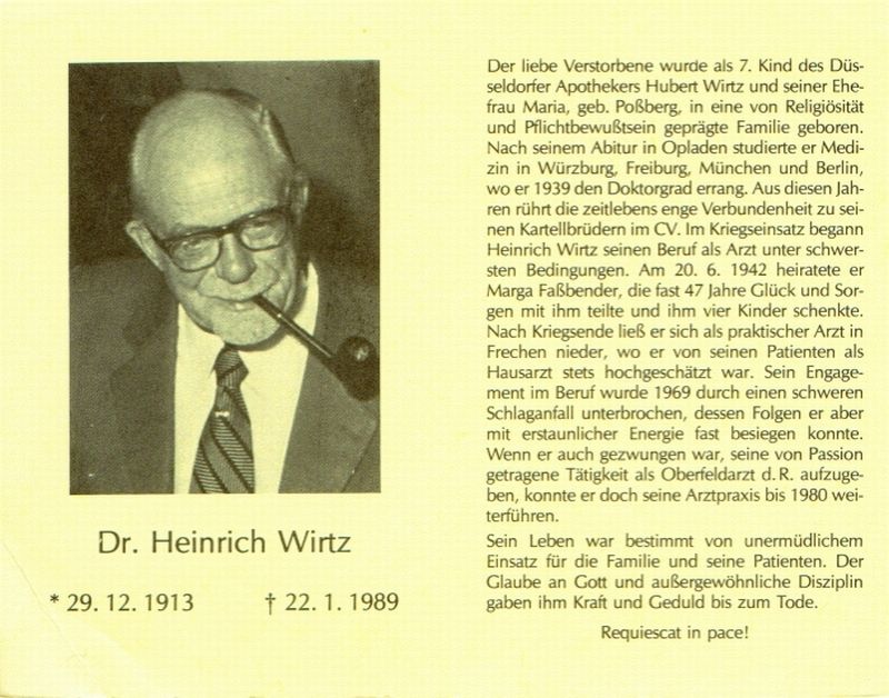 Eltern Hubert Wirtz und Maria geb. Poßberg; Arzt; ∞ 20.06.1942 Marga Faßbender; 4 Kinder; |