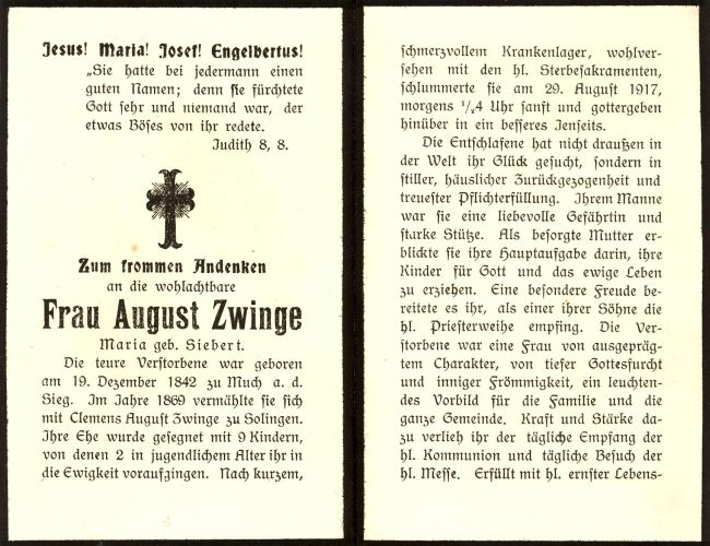 ∞ 1869 Maria Catharina Siebert; 9 Kinder, davon 2 † ; |