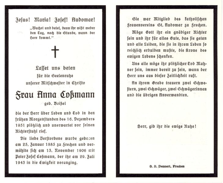 | ∞ 13.11.1906 mit Peter Josef Coßmann, 29.07.1943 †; |
