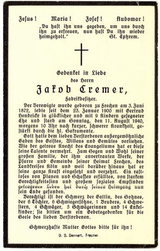 | Fabrikbesitzer; ∞ 23.01.1900 Gertrud Hendrickx; 9 Kinder; |