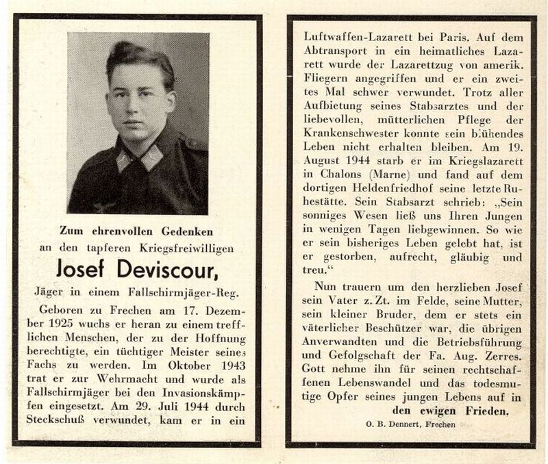 | im 2. Weltkrieg gefallen; Jäger in einem Fallschirmjäger-Reg.; |