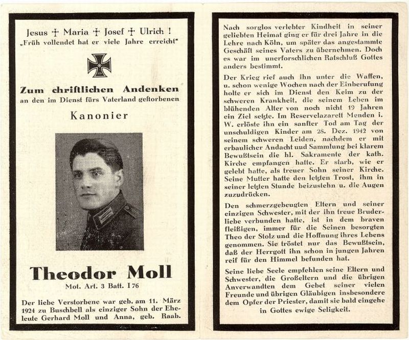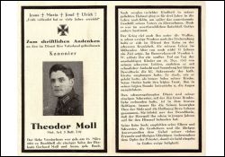 | im 2. Weltkrieg gefallen; Kanonier Mot. Art. 3. Batt I76; Eltern Gerhard Moll und Anna geb. Raab; |