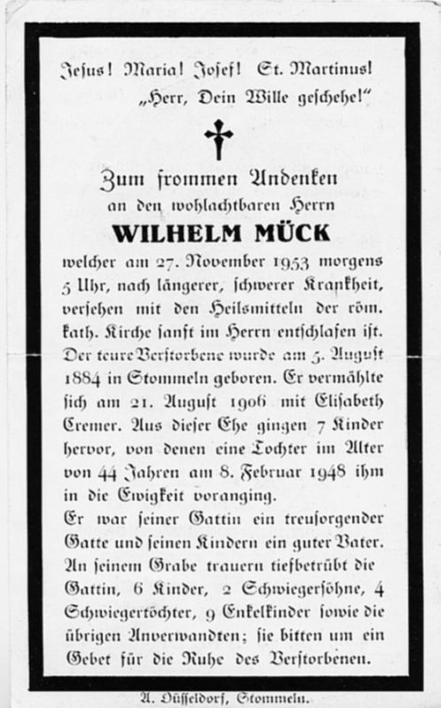 ∞ 21.08.1906 Elisabeth Cremer; 7 Kinder, 1 Tochter mit 44 J. am 08.02.1948 verstorben |