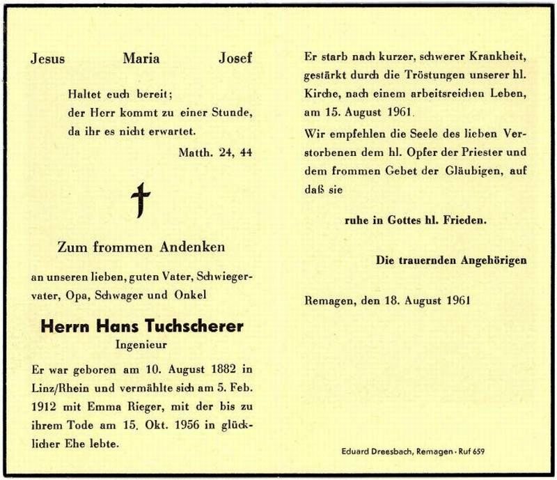 | ∞ 05.02.1912 mit Emma Rieger, 15.10.1956 †; Ingenieur; |