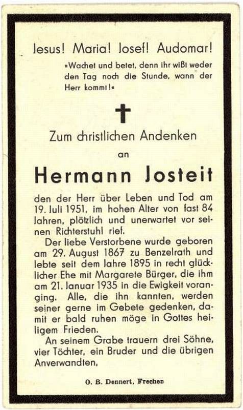 ∞ 1895 mit Margarete Bürger; 21.01.1934 †; 3 Söhne, 4 Töchter; |