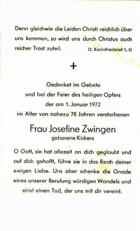 Zwingen, geb. Kickers | Vorname: |