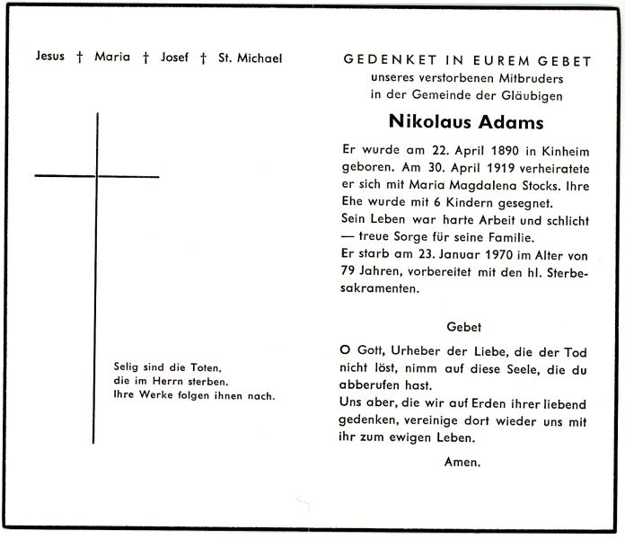 ∞ am 30.04.1919 mit Maria Magdalena Stocks; 6 Kinder; |