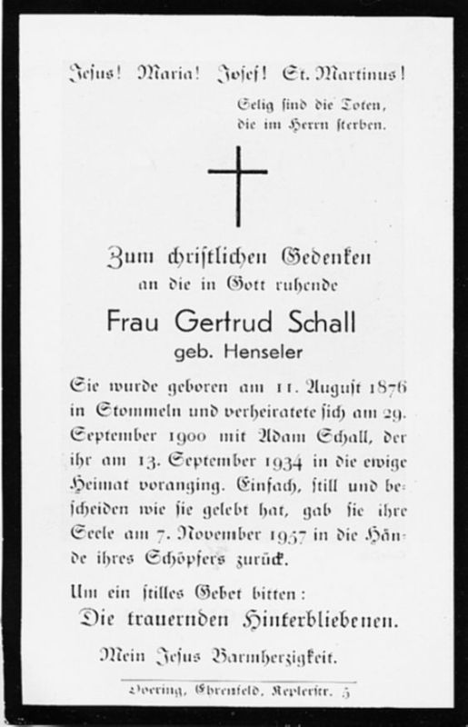 ∞ 29.09.1900 Adam Schall, †13.09.1934 |