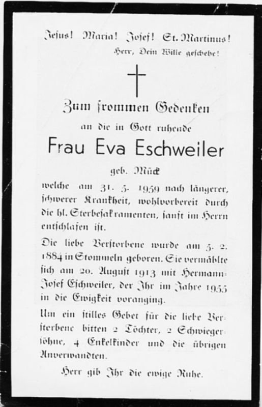 ∞ 20.08.1913 Hermann-Josef Eschweiler, †1955 |